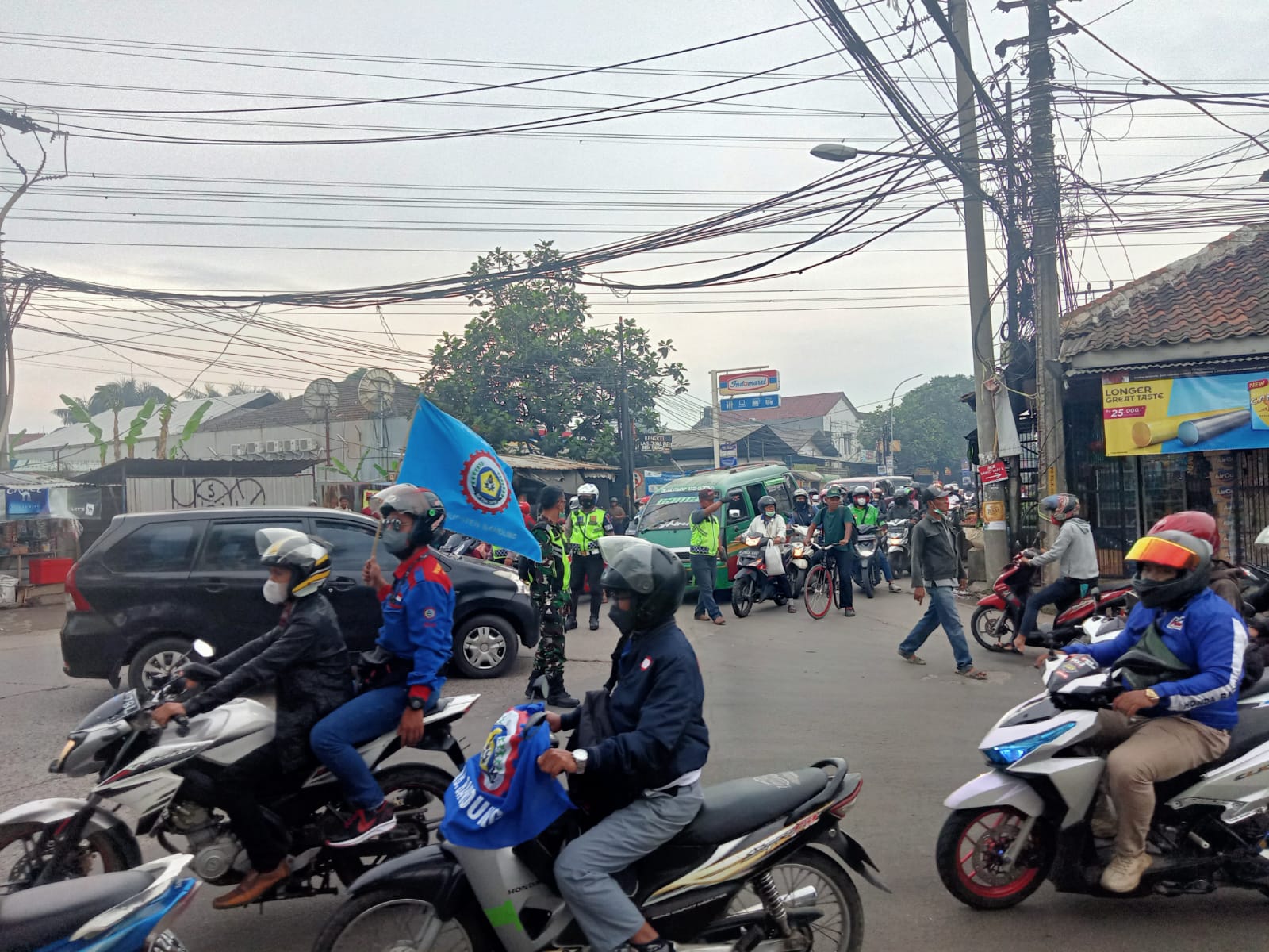 Lantas Polsek dan Danramil Dayeuhkolot, Penanganan Pendemo Buruh di Wilayah Hukum Polsek Dayeuhkolot