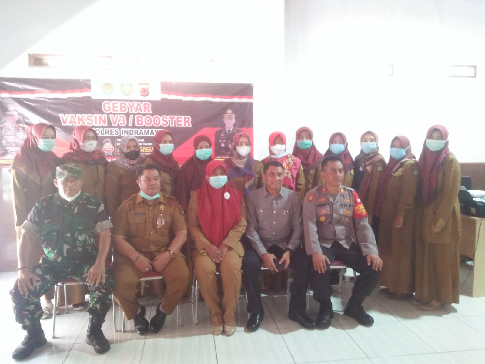 Dalam kegiatan Gebyar Vaksin V 3 / Boster Presisi Polres Indramayu bersama Forkompimcam diikuti warga sasaran dari 5 kecamatan dengn menurunkan 3 (tiga) tim tenaga kesehatan (Nakes) dari UPTD Puskesmas Bugis.