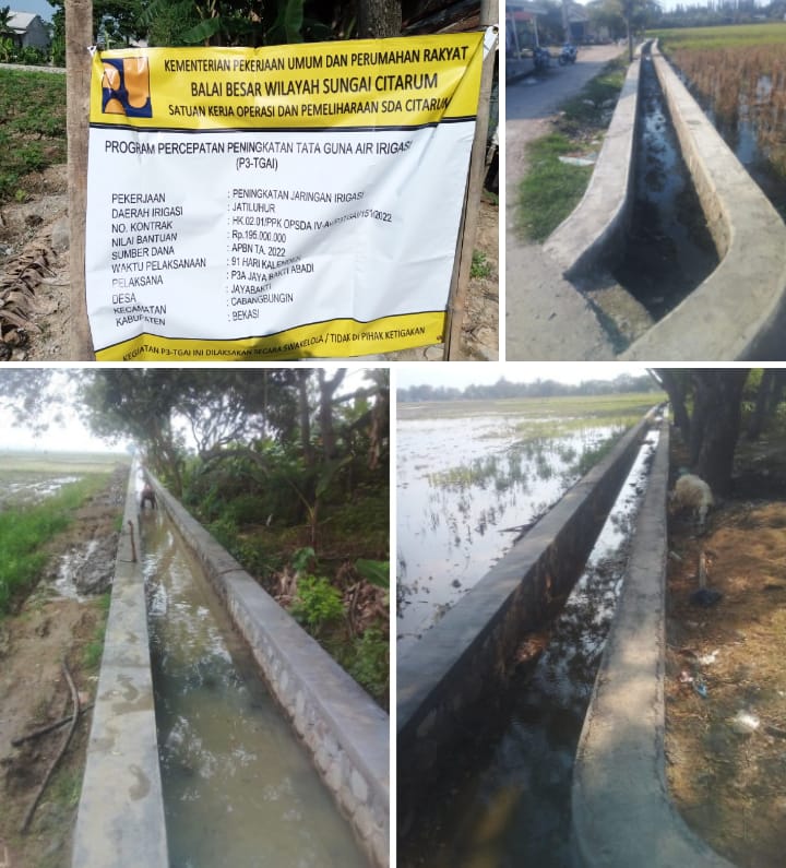 Bekasi Jabar, SIBER88.CO.ID_Program percepatan pengguna tata guna air irigasi (P3TGAI) program dari kementrian (PUPR) TA.2022, yang dikerjakan para kelompok tani yang ada didesa jaya bakti Kecamatan Cabang Bungin, Kabupaten Bekasi, Propinsi Jabar. Patut di apresiasi oleh Masyarakat sekitar. Senin 27-Jun-2022.