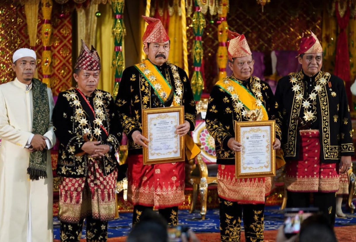 Penganugerahan ini ditandai dengan pengukuhan gelar,penyematan pin LAM Jambi, pemasangan selempang, pengalungan medali, penyerahan piagam gelar adat melayu Jambi oleh Ketua LAM Provinsi Jambi Hasan Basri Agus serta penyisipan keris oleh Gubernur Jambi Dr. H Alharis. (Bzz)