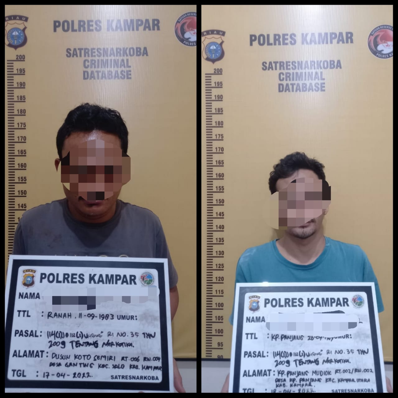 Penangkapan pertama oleh Tim Ojoloyo yang di pimpim oleh KBO Narkoba Iptu Edi Candra SH pada hari minggu (17/4/2022) sekira pukul 21.00 wib terhadap tersangka ZE (40) warga Dusun Koto Semiri Rt.006 Rw. 004 Desa Ganting Kec. Salo Kab. Kampar, ZE ditangkap pihak kepolisian pada saat pelaku Jl. Dusun I Kp. Bukit Desa Bukit Ranah Kec. Kampar. kab. Kampar.