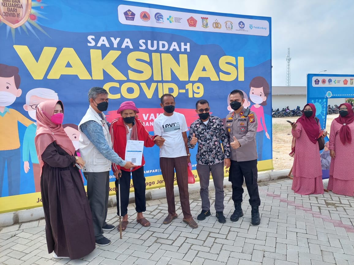 Pantauan di lokasi, dengan didampingi keluarganya, meski berjalan dengan bantuan tongkat penopang, Atuk Kutar tampak sangat antusias datang ke lokasi vaksinasi massal serentak untuk melaksanakan suntik vaksin.