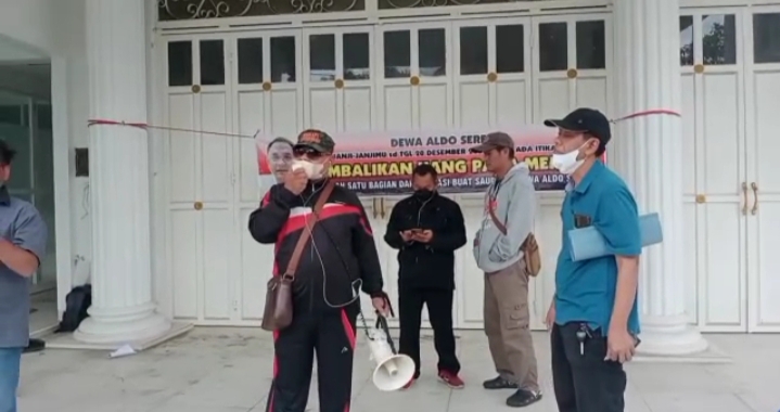 Mereka membentangkan spanduk protes yang ditunjukkan kepada pemilik rumah berinisial DAS.