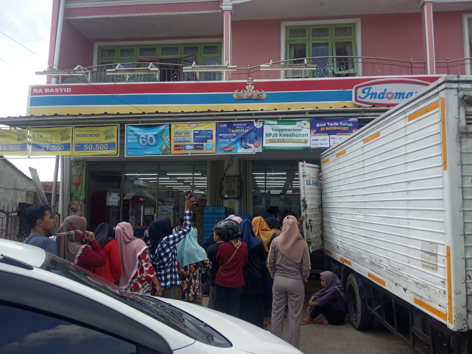 Para Ibu -ibu menyeluruh rela Antri dan berdesakan demi minyak goreng 2 liter yang di jaja, di Indomart dan Alfamart