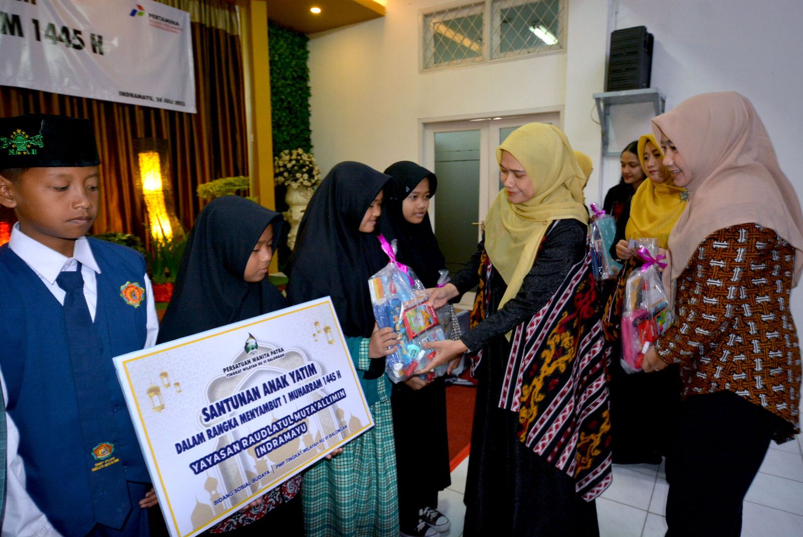 Indramayu Jabar, SIBER88.CO.ID_Persatuan Wanita Patra (PWP) Tingkat Wilayah PT Kilang Pertamina Internasional RU VI Balongan melalui Bidang Sosial dan Budaya menggelar bakti sosial dengan menyantuni 150 anak yatim pada momen menyambut tahun baru Islam 1445 Hijriyah,Rabu(26/7/2023).