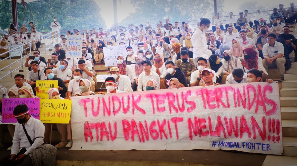 “Kami angkat dalam tuntutan soal isu penghapusan honorer 2023, kawan-kawan merasa khawatir bila pemprov tidak memberikan jaminan untuk menyelamatkan para tenaga non-PNS,” ujarnya.