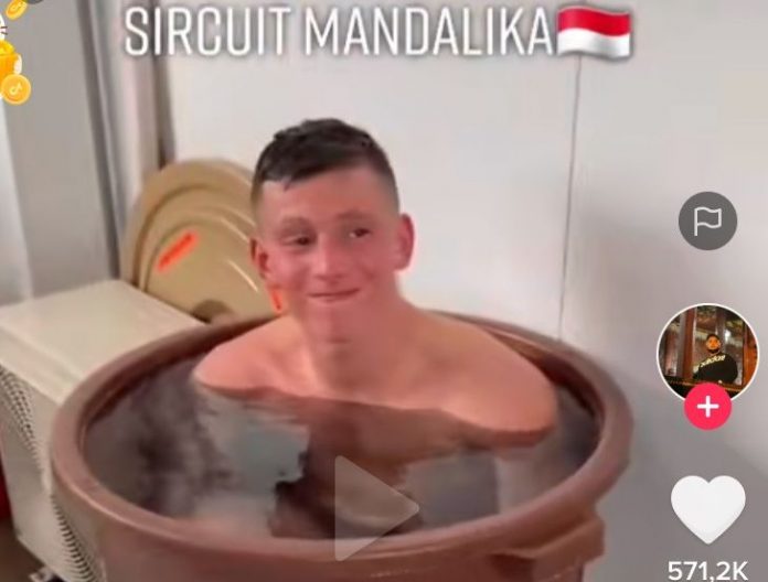 Diunggah oleh akun TikTok @Dodi Setiawan, terlihat dua pembalap Yahama Andrea Locatelli dan Toprak Razgatlıoğlu sedang berendam usai latihan bebas di Sirkuit Mandalika, Jumat 19 November 2021.