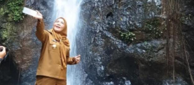 Bandar Lampung, SIBER88.CO.ID_Walikota Bandar Lampung,Eva Dwiana,mengunjungi air terjun Batu Putu,sekaligus menikmati suasana alam sekitarnya sambil berbasah-basahan terkena gerimis air terjun tersebut.