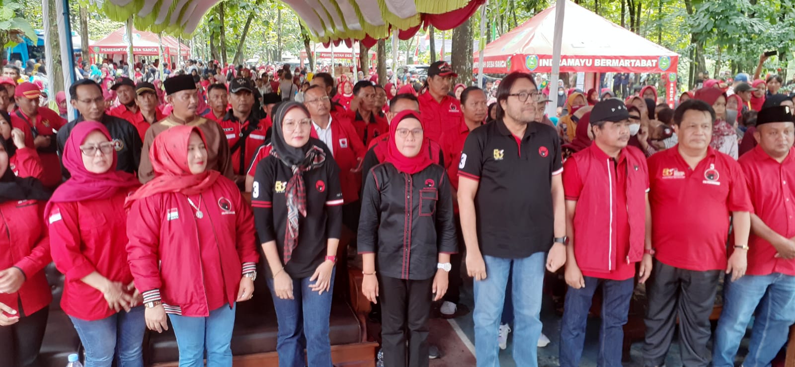 Indramayu Jabar, SIBER88.CO.ID_Rangkaian hari ulang tahun ke-50 PDI Perjuangan dihadiri Bupati Indramayu, Nina Agustina pada Senin(23/1/2023)di desa Sanca kecamatan Gantar.