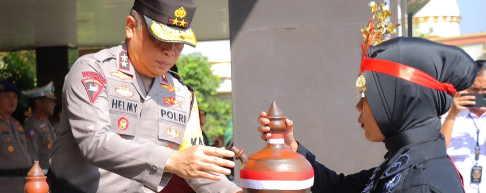 Nuansa Kearifan Lokal,Tradisi Air Suci Polda Lampung Cuci Panji Tribrata di Hari Bhayangkara