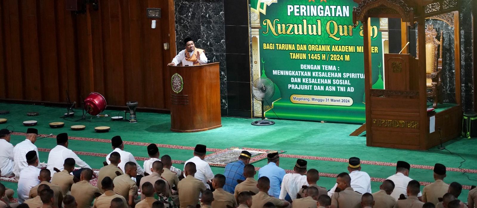 Peringatan Nuzulul Qur’an ini tidak hanya menjadi refleksi spiritual bagi para prajurit dan ASN TNI AD, tetapi juga menjadi momentum penting dalam mempererat tali persaudaraan dan meningkatkan kesalehan sosial di lingkungan Akademi Militer.
