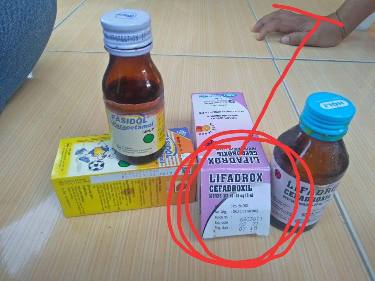Tak butuh waktu lama,sampainya di rumah sang ibu meminumkan obat kepada anaknya,tiba-tiba sang anak muntah-muntah,tapi si ibu berfikir mungkin karena anaknya sedang dalam kondisi sakit sehingga perut si anak menolak. Pada sore harinya obat tersebut diminumkan kembali keanaknya dan lagi-lagi si anak muntah-muntah,ibu sang anak belum menyadari bahwa yang diminum itu obat yang sudah kadaluarsa,ia baru sadar setelah melihat bulan dan tahun yang tertera dikemasan botol(exp date 03 2021) tersebut.