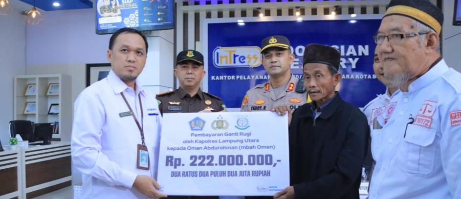 Kapolres Lampung Utara, AKBP Teddy Rachesna,mengatakan uang ganti rugi ini adalah bentuk keseriusan terhadap legitimasi hukum sesuai arahan Kapolda Lampung, Irjen Helmy Santika.