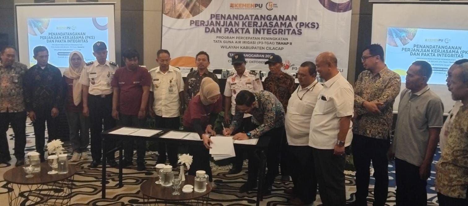 Sebelum pelaksanaan, Penandatanganan Perjanjian Kerjasama dan Pakta Integritas terlebih dahulu dilakukan Balai Besar Wilayah Sungai (BBWS) Cintanduy bersama perwakilan penerima, Rabu (22/10/2025) di Fave Hotel Cilacap.