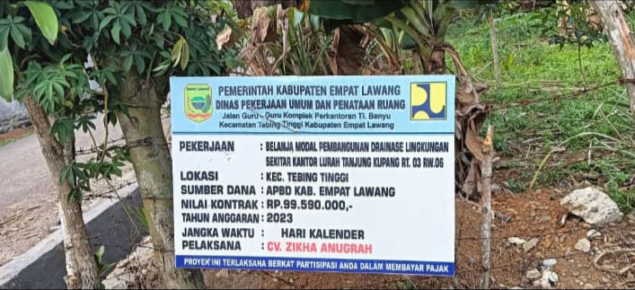 Empat Lawang Sumsel, SIBER88.CO.ID_Paket proyek pengadaan langsung di lurahan Tanjung Kupang, Kecamatan Tebing Tinggi, Kabupaten Empat Lawang terindikasi KORUPSI.