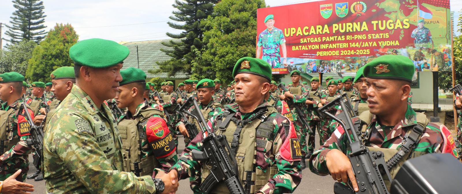 Mengakhiri amanatnya, Pangdam berharap agar keberhasilan Satgas Yonif 144/Jaya Yudha dapat menjadi inspirasi dan motivasi bagi seluruh prajurit Kodam XXI/Radin Inten untuk terus memberikan karya terbaik dalam menjaga kedaulatan Negara Kesatuan Republik Indonesia.