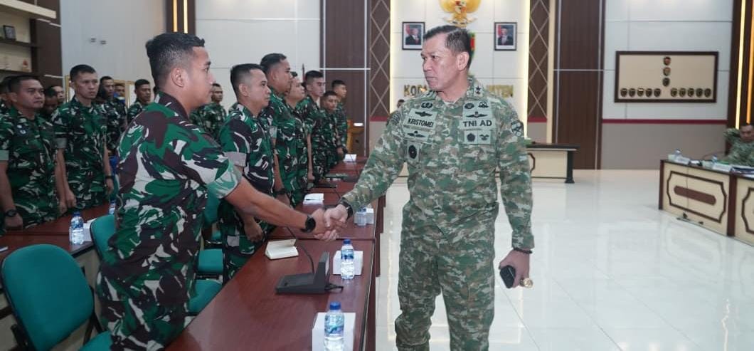 Lampung, SIBER88.CO.ID_ Pangdam XXI/ Radin Inten, Mayor Jenderal (Mayjen) TNI Kristomei Sianturi, memberikan pengarahan kepada Pama Abit Dik Tuk PA Tahun 2025 dan Pama Abit Akmil Tahun 2025, bertempat di aula A Yani Makodam XXI/RI Bandar Lampung, pada hari Jum’at (30/1/2026).