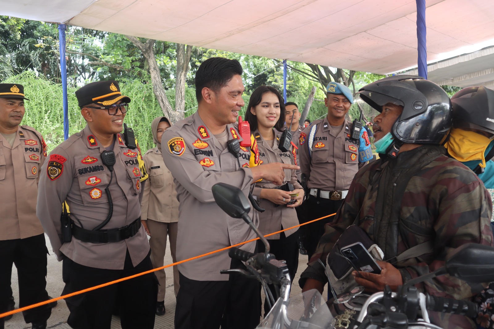 Tak hanya itu, aparat kepolisian juga menyempatkan bertegur sapa dengan para pemudik sepeda motor untuk sekedar melepas penat selama mengantri kapal.
