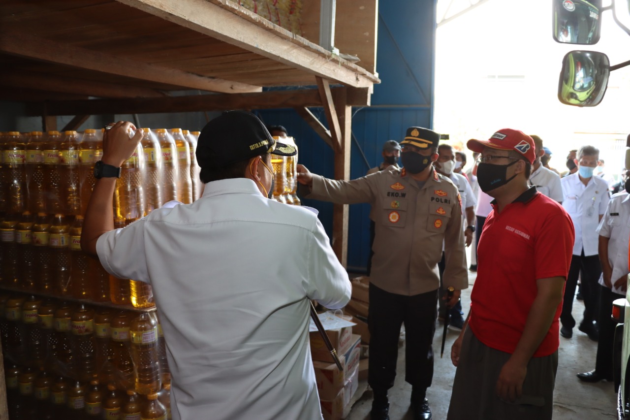 Cilacap Jateng, SIBER88.CO.ID_Kapolres Cilacap AKBP Eko Widiantoro, S.I.K., M.H. bersama Bupati Cilacap berkeliling mengecek ke sejumlah gudang distributor minyak goreng di Kabupaten Cilacap, rabu 16/3/2022