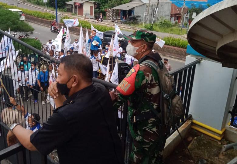 Babinsa Serda Harun mengatakan aksi unjuk rasa yang dilakukan terkait perihal Pemutusan kerja Oleh manajemen UID Lampung di kantor PLN UID Lampung.