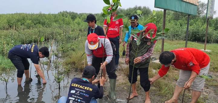 Penanaman pohon bakau merupakan inisiatif dan kolaborasi antara Patriot Desa Kabupaten Indramayu dan Badan Eksekutif Mahasiswa (BEM) Vokasi Universitas Indonesia (UI) dalam melaksanakan program Gerakan Tanam Bakau (GERTAKU) Tahun 2022 dengan tema “Together for Better Nature” yang didalamnya terdapat tiga rangkaian agenda yaitu Mangrove for Nation (Mantion), Kampanye Peduli Sampah, dan Protect Our Mangrove (Prove).