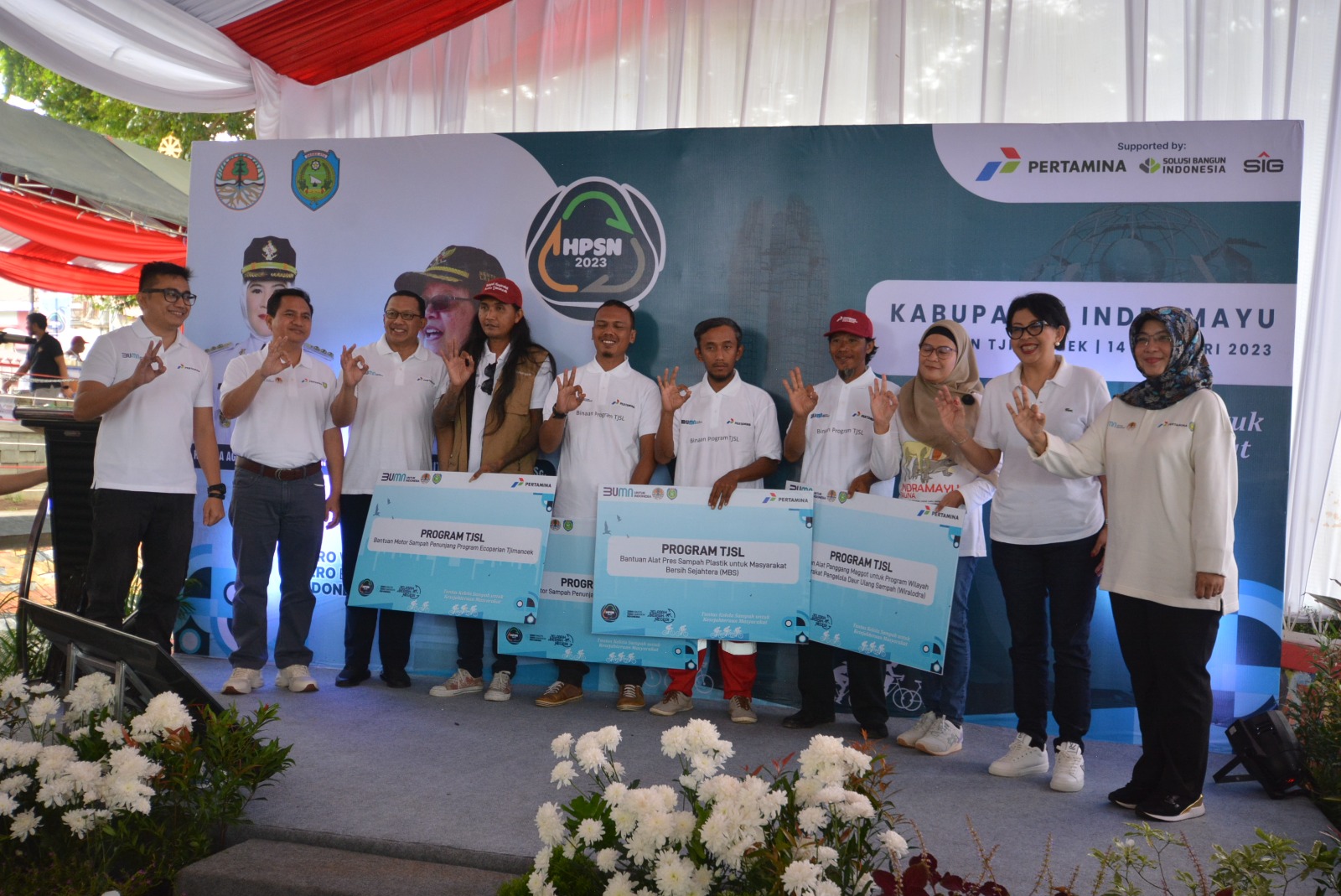 Menutup kegiatan, Vice President CSR & SMEPP Management PT Pertamina (Persero) Fajriyah Usman, bersama General Manager PT Kilang Pertamina Internasional Unit VI Balongan secara simbolis menyerahkan bantuan untuk mitra binaan Pertamina Group, di antaranya bantuan berupa alat panggang maggot untuk Program Wiralodra, bantuan motor sampah penunjang Program Bank Sampah Berseri, dan bantuan alat press sampah plastik untuk Masyarakat Bersih Sejahtera (MBS). (Bzz)