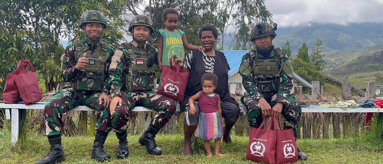 Momen menyentuh terjadi saat kunjungan ke rumah Mama Matuan, salah satu warga penerima bantuan, anaknya tampak tersenyum lebar sambil menikmati jajanan yang diberikan oleh salah satu personel, menciptakan suasana akrab dan kedekatan antara personel dan warga di Distrik Napua Jayawijaya Papua Pegunungan.