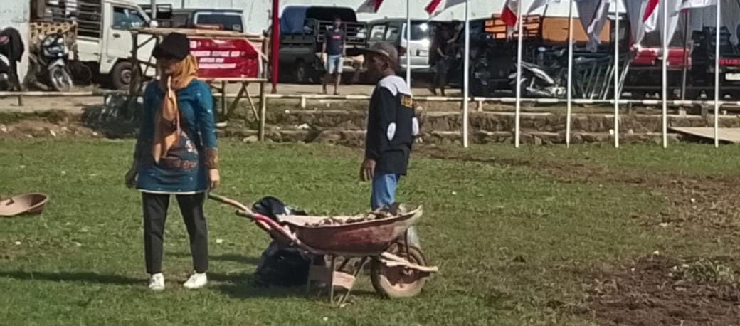 Hal ini menjadi sorotan karena Pj Kades Anjarningsih tak segan untuk membaur dengan Linmas dan staf desa, membersihkan area untuk upacara besok Minggu, memungut sampah dan bahkan mendorong gerobak angkut.