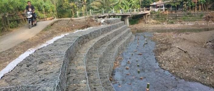 Banyumas Jateng, SIBER88.CO.ID_Pekerjaan pemasangan bronjong di aliran Sungai Panusupan wilayah Desa Lumbir Kecamatan Lumbir Kabupaten Banyumas Jawa Tengah telah selesai dilaksanakan pada Jum’at(14/6/2025).