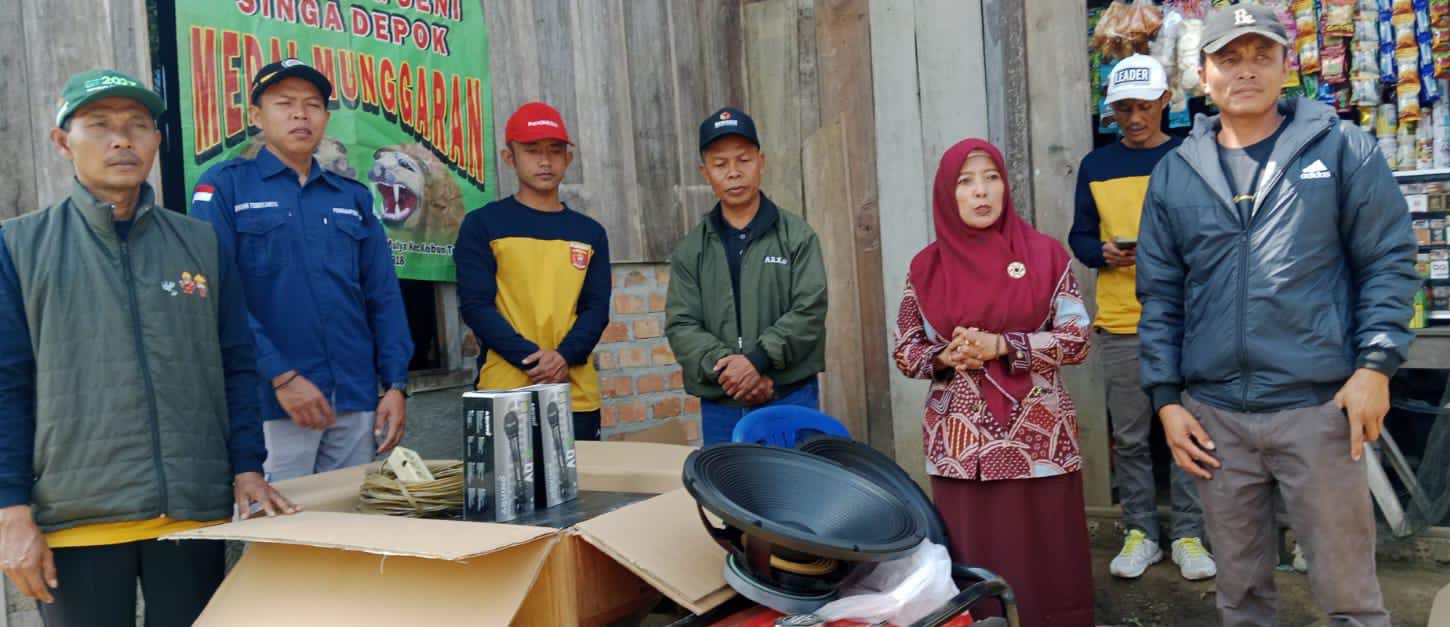 Lampung Barat, SIBER88.CO.ID_Pemerintah Desa Tugu mulya kecamatan Kebun Tebu kabupaten Lampung Barat menyalurkan bantuan kepada kelompok kesenian Singa Depok Medal berupa 1 buah power sound sistem,Roda Sorong, mic, box salon , genset dan speker.