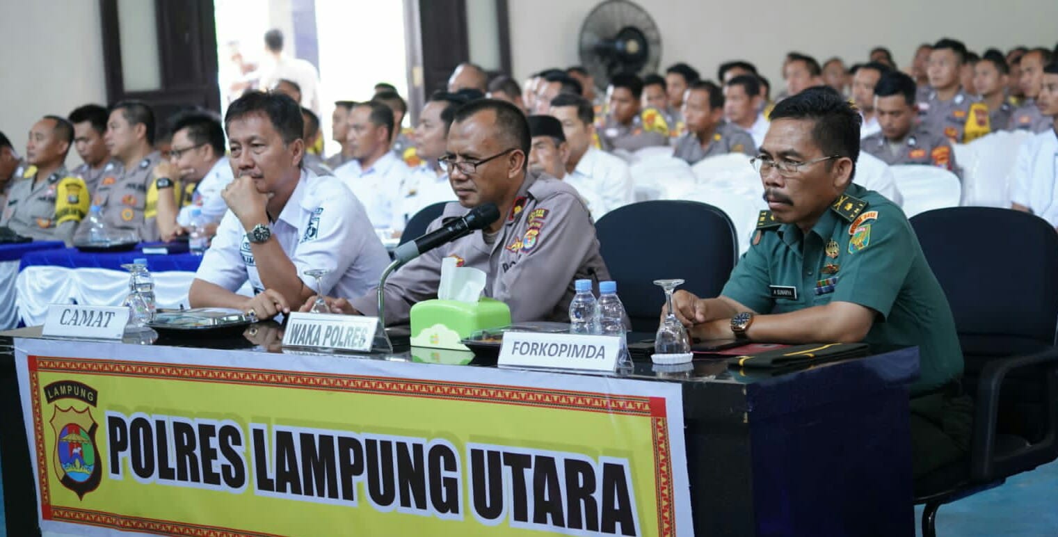 Lampung Utara, SIBER88.CO.ID_Pembekalan pelaksanaan rencana pengamanan pemilu tahun 2024,Polres Lampung Utara mengikuti apel 6 pilar yang dilaksanakan di Polres setempat, Kamis(12/10/23).