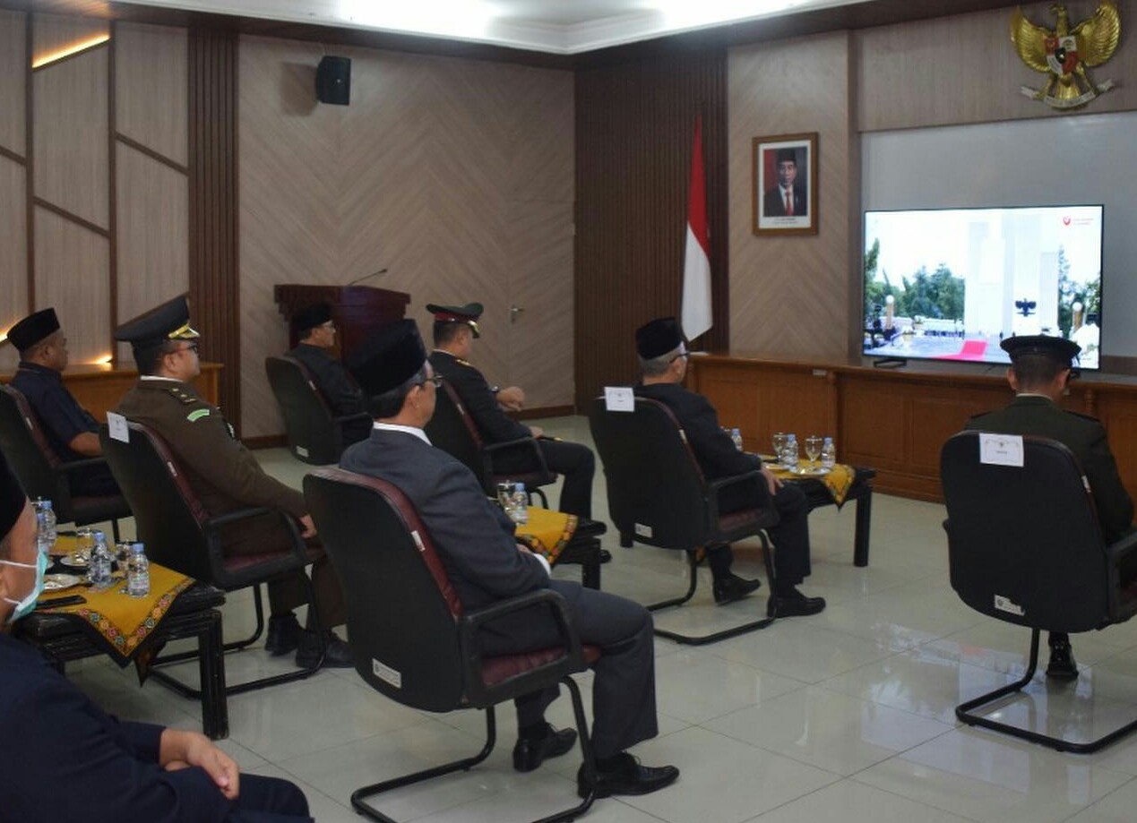Indramayu Jabar, SIBER88.CO.ID_Pemerintah Kabupaten Indramayu mengikuti upacara Ziarah Nasional Peringatan Hari Pahlawan Tahun 2022 secara daring di Ruang Ki Tinggil Sekretariat Daerah Kabupaten Indramayu, Kamis kemarin(10/11/2022).