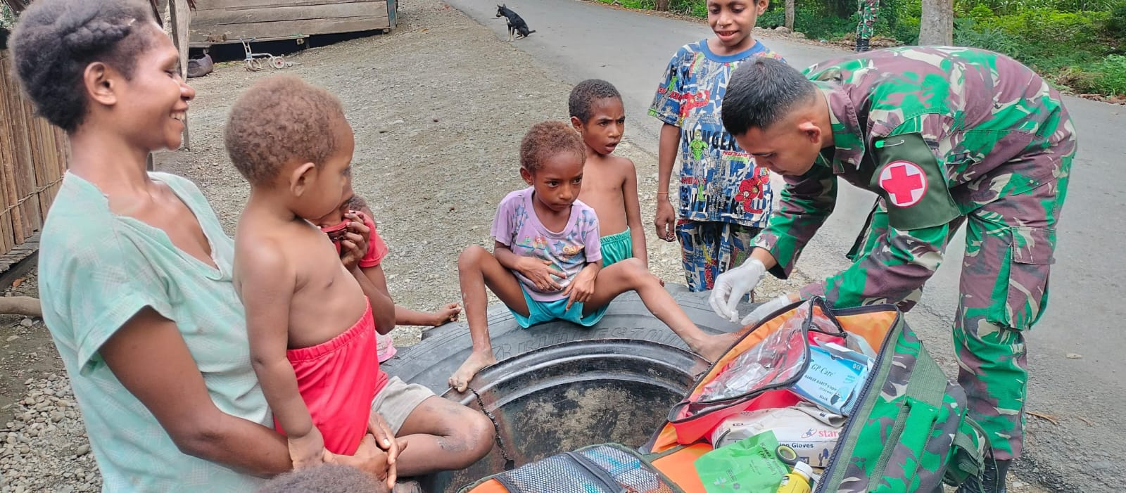 Keerom Papua, SIBER88.CO.ID_ Dalam upaya membantu pemerintah daerah di perbatasan Papua, Satgas Pamtas Yonif 131/BRS menerjunkan tim kesehatan untuk melaksanakan pengobatan gratis pada masyarakat di kampung kalimao Distrik Waris Kabupaten Keerom Papua, Senin(30/9/2024).