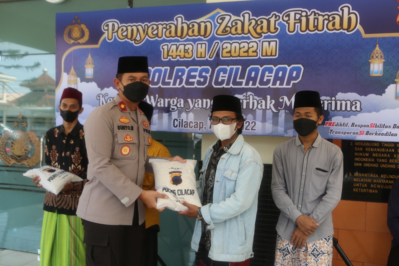 Pembagian Zakat Fitrah 1 Syawal 1443 Hijriah di Lapangan SAR Polres Cilacap. Pembagian Zakat kepada Kaum Dhuafa, Fakir Miskin, dan anak Yatim yang berada di sekitar lingkungan Polres Cilacap. Hal tersebut merupakan salah satu program Kegiatan Polres Cilacap yang rutin di senggelarakan setiap tahun utamanya di Akhir Bulan Ramadhan ini.
