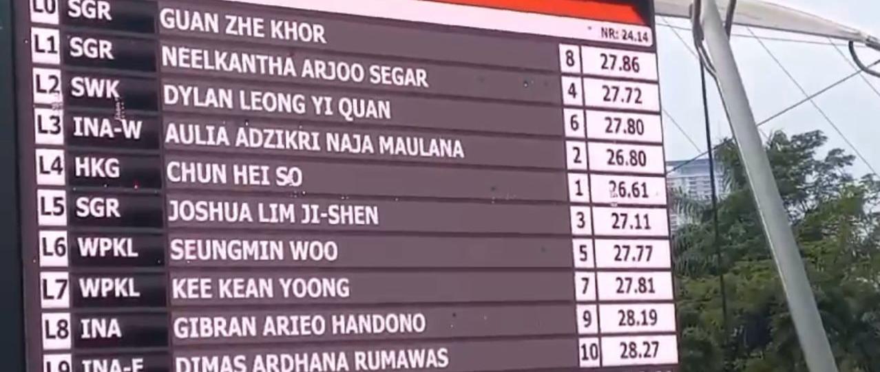 Medali emas diperoleh perenang asal Hongkong, Chun Hei So dengan catatan waktu 26,61 detik.Sedangkan perunggu diterima perenang Selangor Malaysia, Joshua Lim Ji-Shen dengan catatan waktu 27.11 detik.