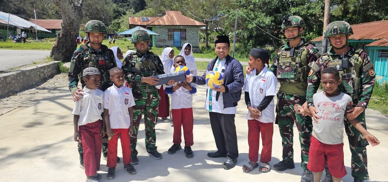 Menunjukan kepedulian TNI terhadap kebugaran masyarakat lokal, Satgas Yonif 521/DY termasuk memberikan bantuan sarana olahraga karena minimnya fasilitas olahraga bagi masyarakat dan anggota Satgas di Distrik Walesi Jayawijaya Papua Pegunungan pada Selasa(28/10/2025).