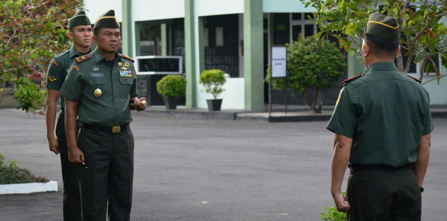 Selaku Inspektur Upacara (Irup) Komandan Korem 043/Gatam, Brigjen TNI Iwan Ma’ruf Zainudin dan Komandan Upacara ( Danup) Mayor Inf Puryanto.