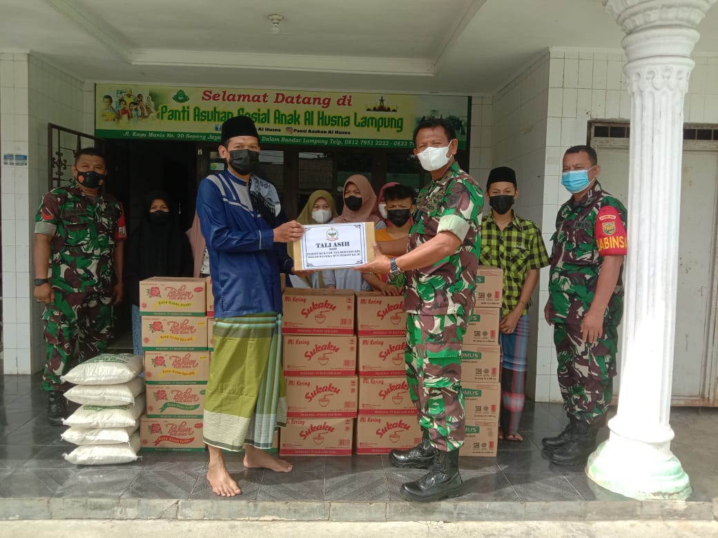 Bandar Lampung, SIBER88.CO.ID_Anggota Persit KCK Cabang XXX Dim 0410/KBL melalui Koramil 410-06/Kedaton menyalurkan bantuan Sembako untuk Panti Asuhan Al Husna yang berlokasi di Jln. Kayu manis Labuhan Ratu, Bandar Lampung, pada Senin (4/4/2022)