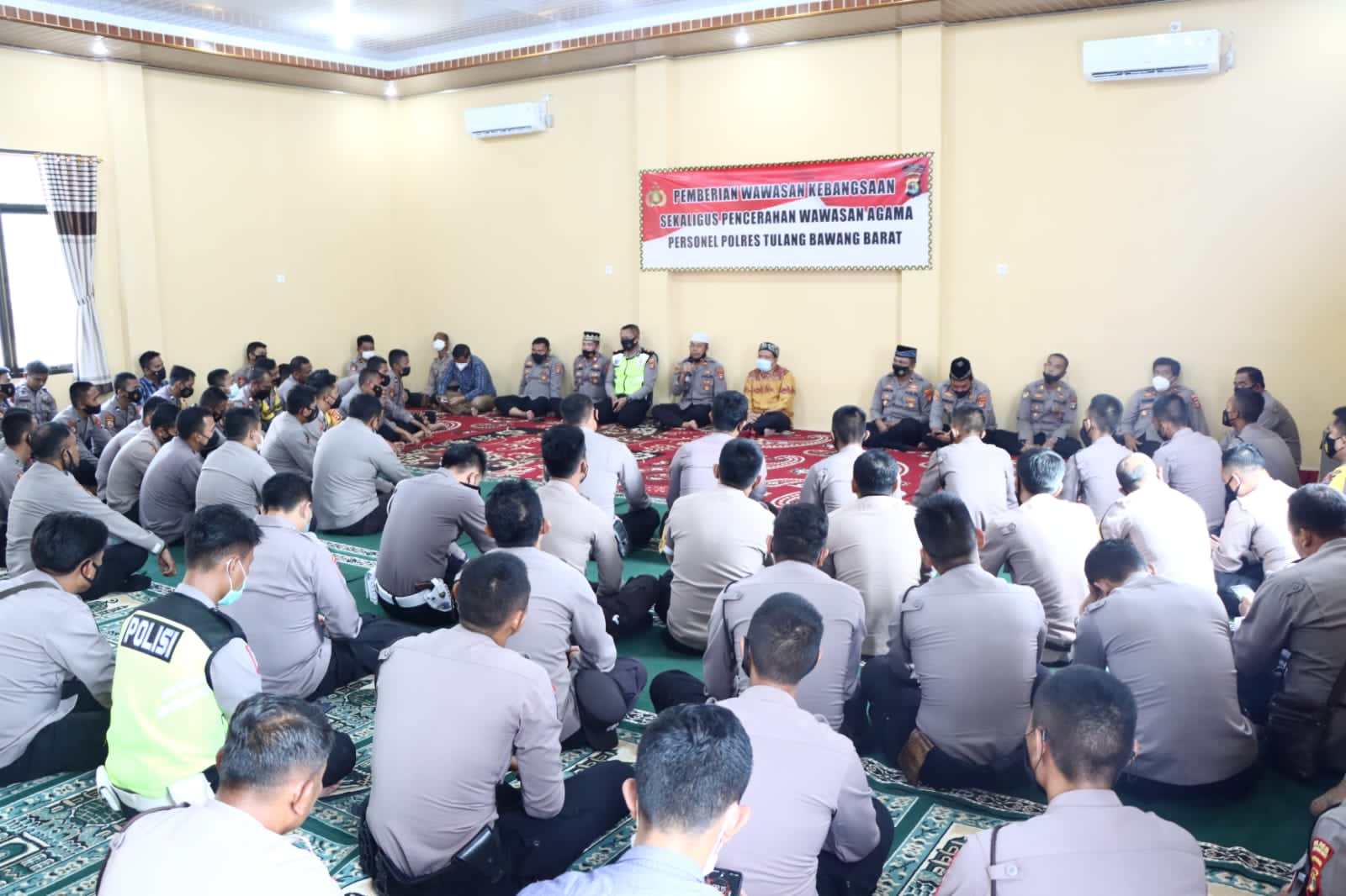 Tulang Bawang, SIBER88.CO.ID_Personel Polres Tulang Bawang Barat diberikan wawasan kebangsaan dan pencerahan wawasan agama oleh Ustadz H Suparman Abdul Karim SAg MPdI.