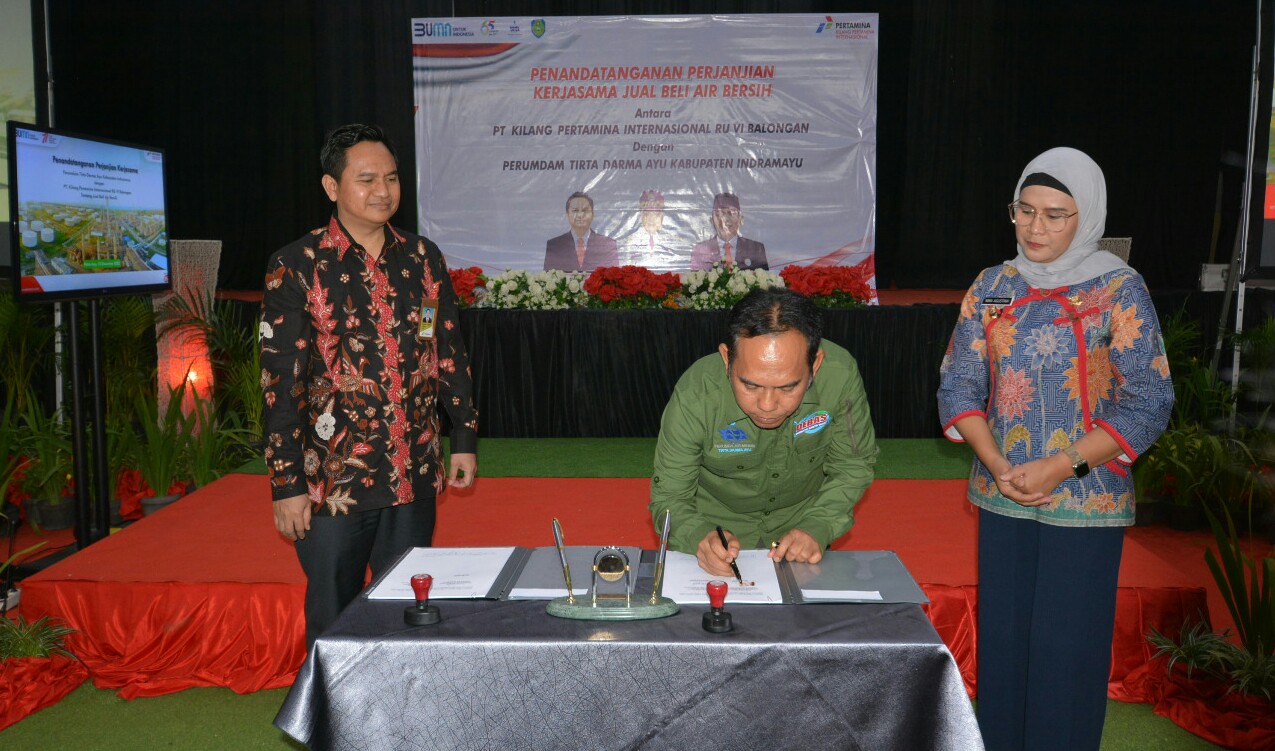 Kerjasama ditandai dengan dilakukan penandatanganan perjanjian oleh General Manager PT KPI Unit Balongan Diandoro Arifian dengan Direktur Utama Perumdam Tirta Darma Ayu, Ady Setiawan, yang disaksikan Bupati Indramayu Nina Agustina, Kamis (15/12), di gedung Patra Ayu Perumahan Pertamina Bumi Patra.