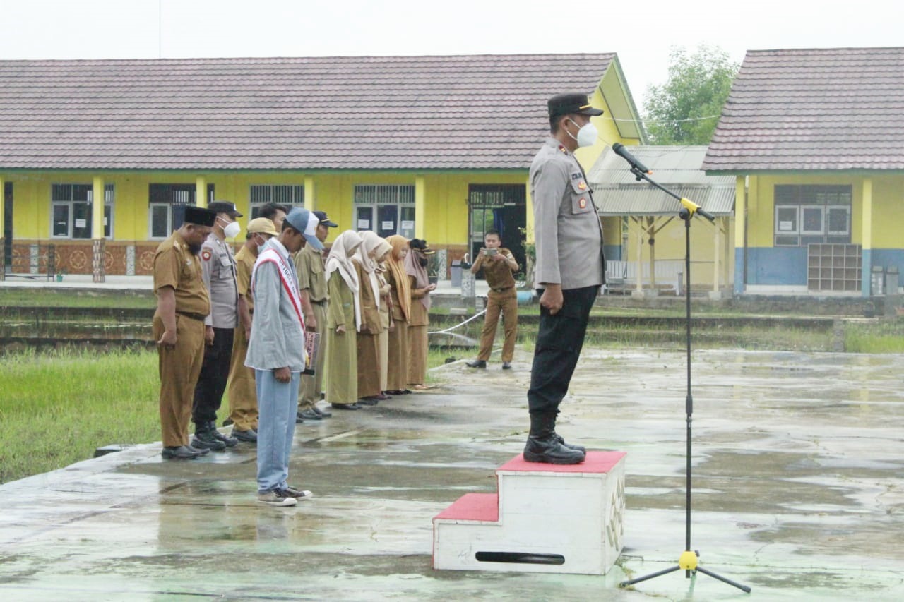 Tulang Bawang, SIBER88.CO.ID_Polsek Dente Teladas, Polres Tulang Bawang, Polda Lampung, turun langsung ke sekolah-sekolah untuk menjadi pembina upacara bendera.