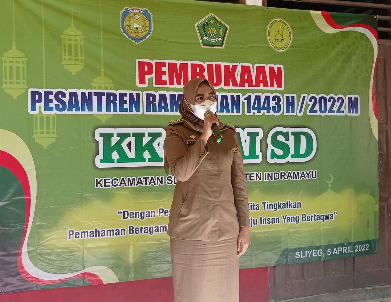 Indramayu Jabar, SIBER88.CO.ID_Camat Sliyeg Endang Ismiati secara resmi membuka kegiatan pesantren ramadhan 1443 H yang dilaksanakan oleh kelompok kerja guru pendidikan agama Islam(KKG PAI)se-kecamatan Sliyeg kabupaten Indamayu Jawa Barat,Bertempat di halaman UPTD SDN 2 Gadingan,Selasa (5/4/2022).