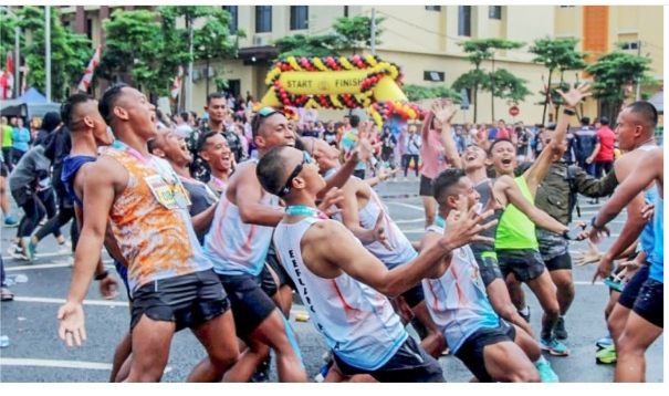 Prajurit Yonif 9 Marinir berhasil sangat untuk berpartisipasi dalam Lomba Bhayangkara presisi fun Run 2022″ Polda Lampung 10 dan 5 km memperingati hari ulang tahun Bhayangkara yang ke 76 di Polda Lampung kecamatan Sukarame di kota Bandar Lampung (Minggu tg 26/6/2022)