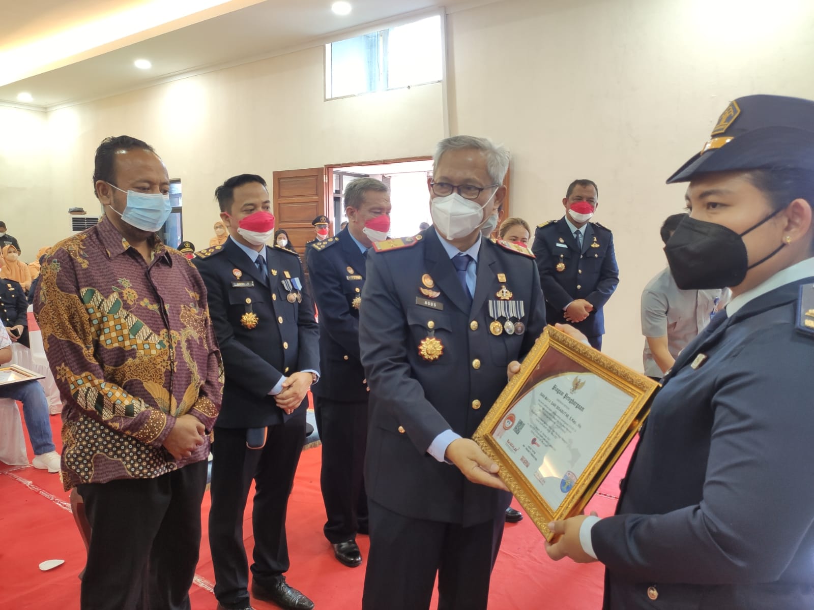 Penghargaan pejuang percepatan penanganan Covid-19 di lingkungan Kantor Wilayah Kementerian Hukum dan HAM Banten ini diberikan kepada Perawat Lapas Rangkasbitung.