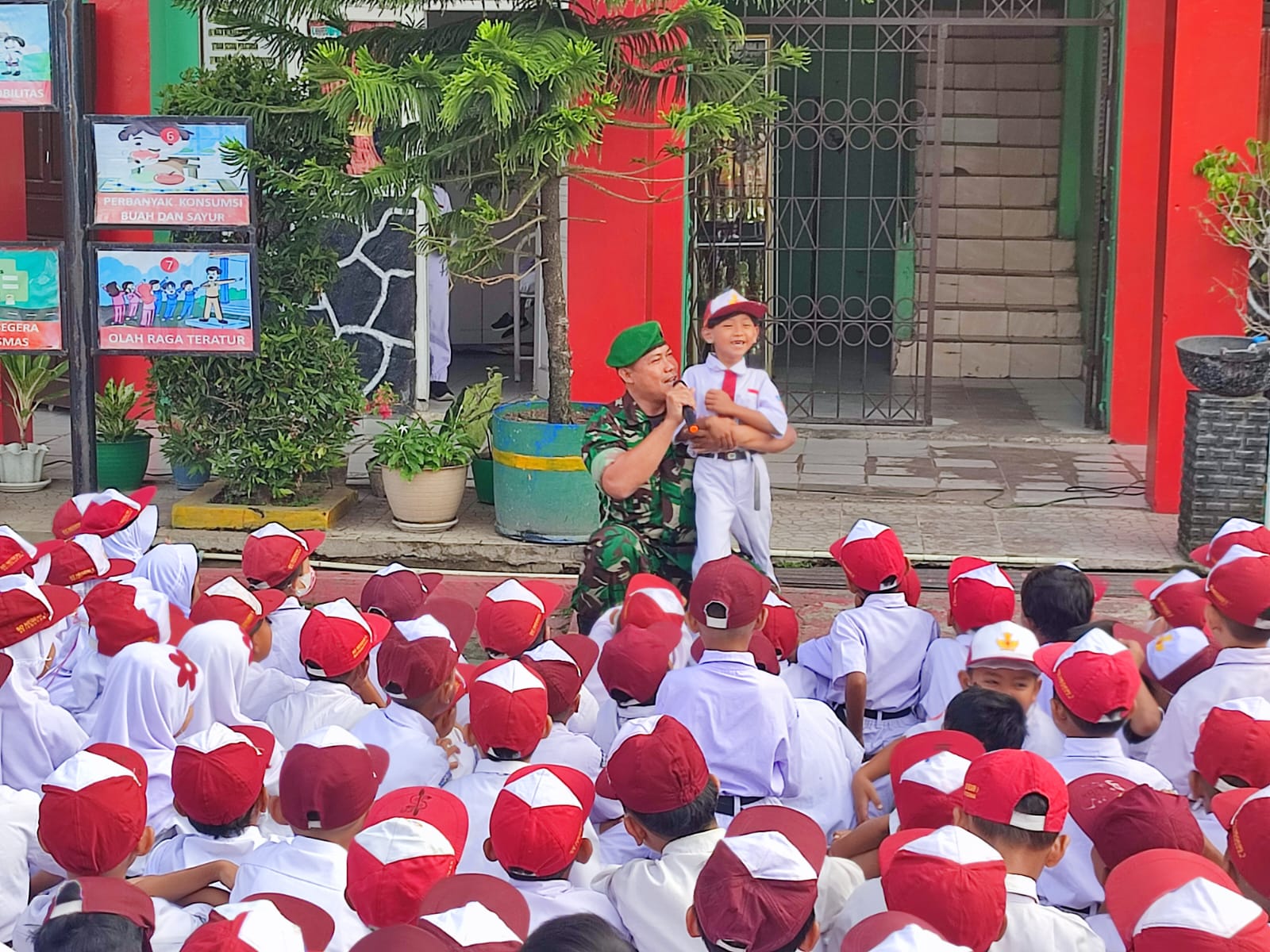 Bandar Lampung, SIBER88.CO.ID_Guna membentuk Karakter anak Bangsa, Babinsa Koramil 410-03 Teluk Betung Utara Serma Sarifuddin tanamkan jiwa Nasionalisme kepada siswa-siswi SD Negeri 1 Keteguhan Kota Bandar Lampung.