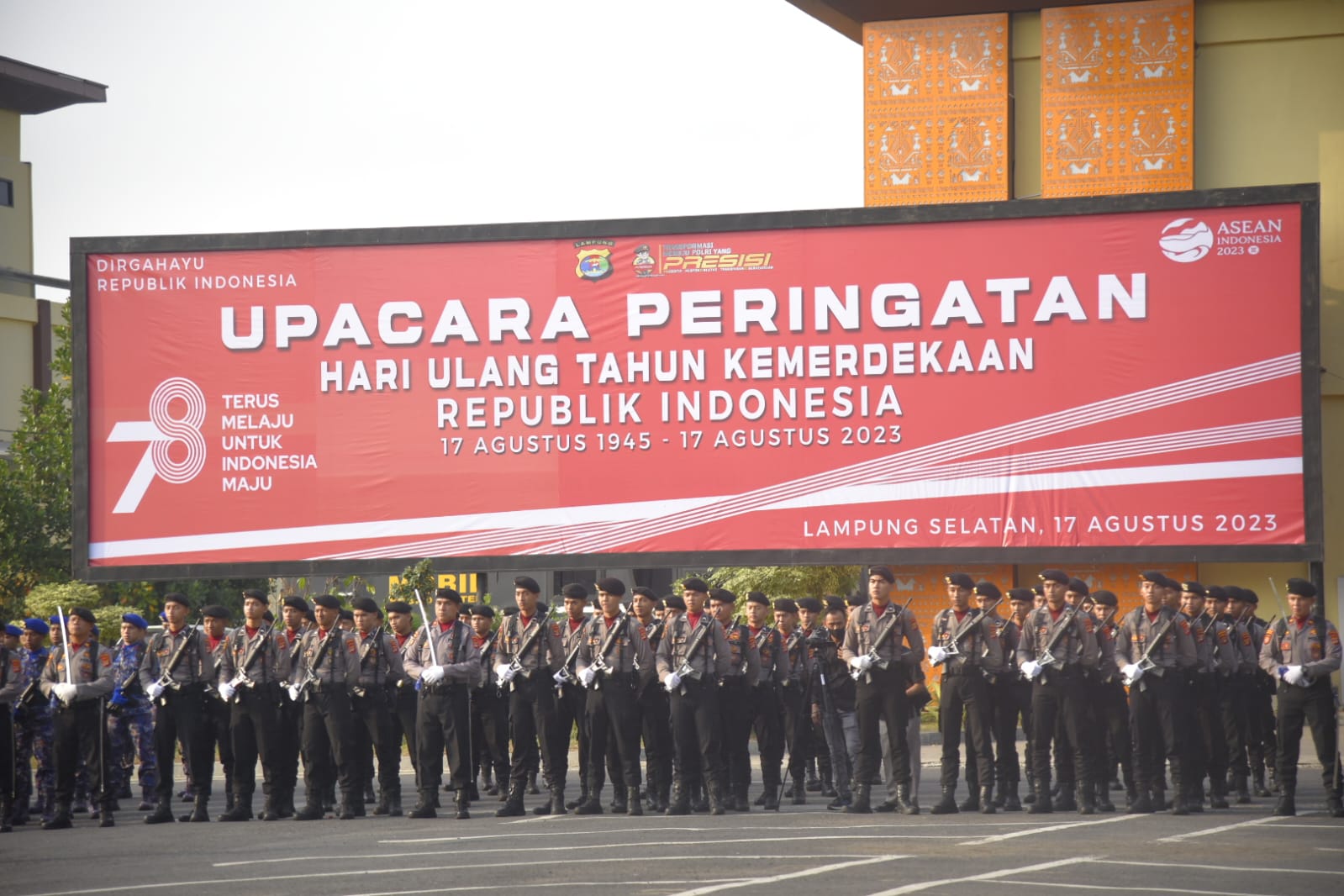 Lampung, SIBER88.CO.ID_Polda Lampung menggelar upacara bendera memperingati Hari Kemerdekaan ke-78 Republik Indonesia, di lapangan apel Mapolda Lampung, Kamis (17/8/2023).