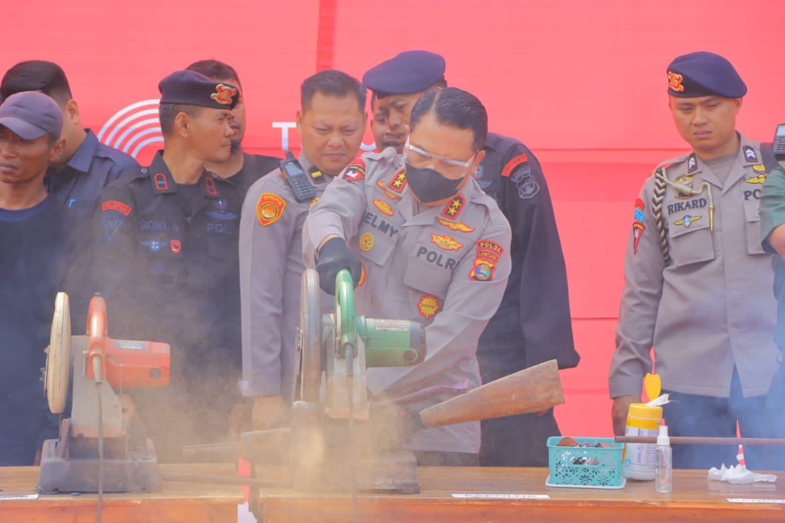 Lampung, SIBER88.CO.ID_Kapolda Lampung Irjen Pol Helmy Santika memusnahkan senpi rakitan beserta amunisinya pada perayaan Hari Jadi Team Khusus Anti Bandit (Tekab) 308 di Mapolda Lampung. Rabu (30/8/2023)