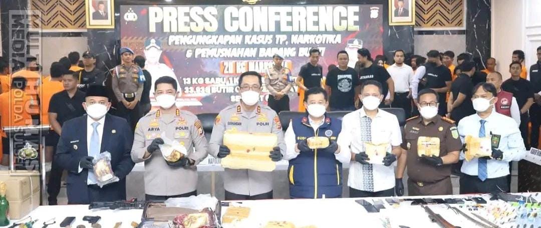 Sepanjang tahun 2025, Polda Sulsel dan jajaran telah mengungkap 2.531 laporan polisi (LP) dengan 3.815 tersangka. Barang bukti yang berhasil disita antara lain: 125 kg sabu, 19.791 butir ekstasi, 59.000 butir obat berbahaya, 8.741 kg ganja.
