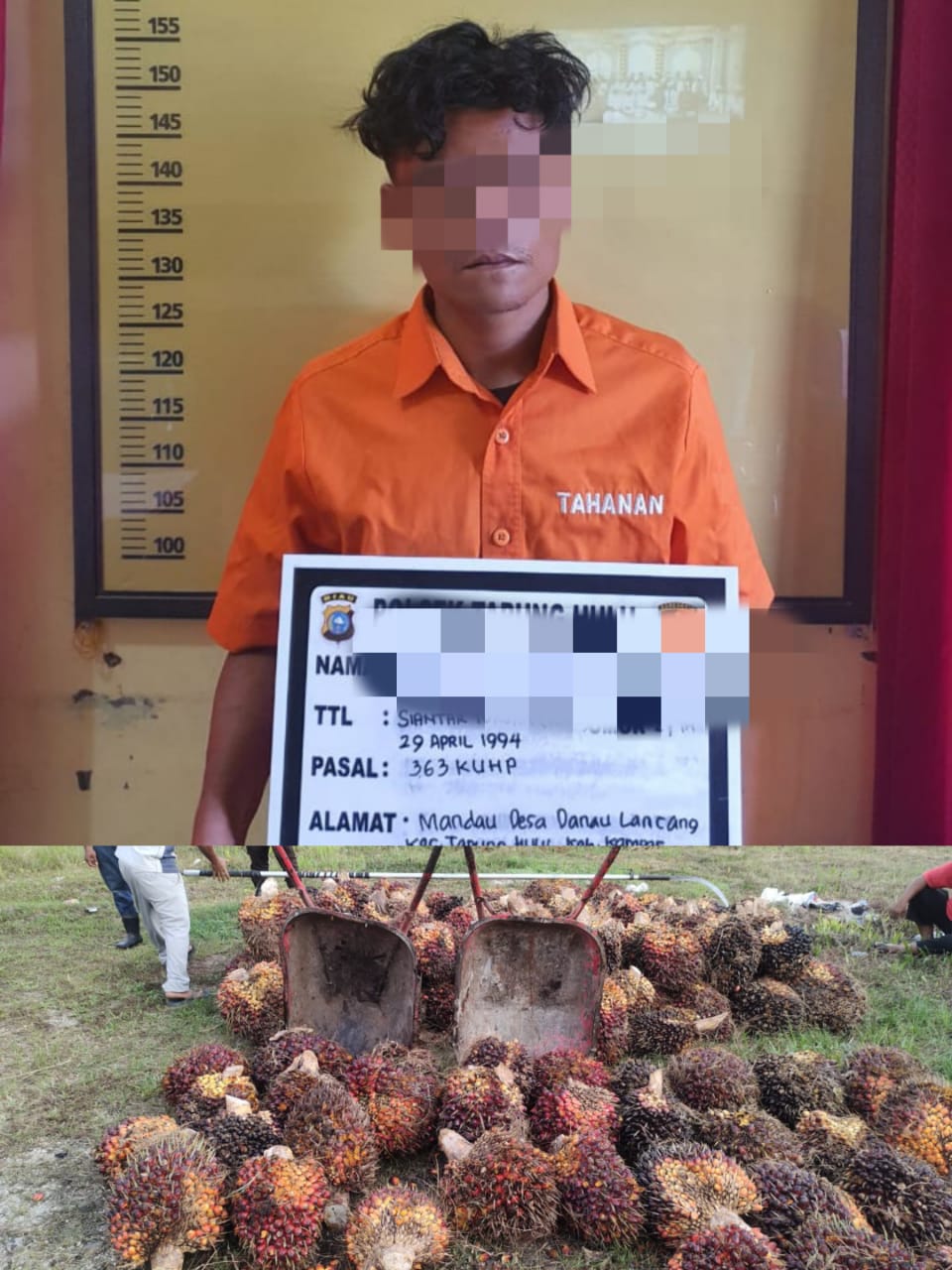 Pelaku HS (27) warga Desa Danau Lancang, Kecamatan Tapung Hulu, ia ditangkap oleh kepala keamanan PT BSP di Afdelinh IV Rayon B, Desa Danau Lancang pada Kamis tanggal 21 Juli 2022 sekira pukul 09.00 WIB.