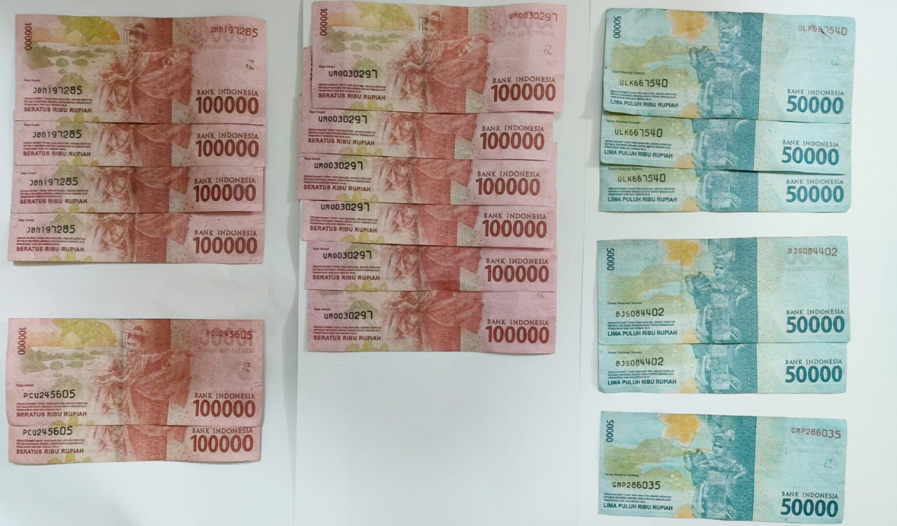 “Upal sebesar Rp 1,5 juta yang diterima oleh korban berupa 12 lembar uang kertas pecahan Rp 100 ribu bergambar Soekarno Hatta, dan 6 lembar uang kertas pecahan Rp 50 ribu bergambar I Gusti Ngurah Rai,” jelas AKP Wido.